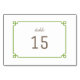 Cartão de Número de Tabela Deco Simples e minimalista com uma moderna fronteira ornamental deco art. verde. Este cartão de mesa clássico e elegante é fácil de personalizar com os detalhes do seu casamento. Localize mais opções de personalização clicando em Personalizar.