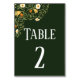 Uma placa na moda verde de mesa de recepção de casamento floral com decoração floral decorativa no canto. Esta mesa de casamento verde pode ser facilmente personalizada. Basta alterar o número da tabela conforme necessário e, se forem necessárias mais placas, você pode repetir o processo depois de colocar a primeira placa no seu carrinho de compro. Note que este cartão também faz parte de uma suíte de casamento maior, com convite de encontro, salvando as datas, guia, cartão postal, ornamentos e muito mais que você pode consultar aqui: https://www.zazzle.com/collections/green_floral_wedding-119833848666747695