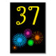 Este design de mesa de placa de apresenta um número personalizável acima de um padrão de várias cores como fogos de artifício de ruptura.