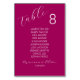 Numeração De Mesa Placa de número de tabela magenta simples com nome