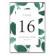 As placas de número de tabela botânica para chips apresentam uma borda de folhagem verde de cor d'água da floresta, moldando o número da sua tabela. Personalize com seus nomes e data de casamento, ou nomeie cada mesa para um toque pessoal extra. Design repete-se no lado oposto. Coordena-se com a nossa suíte de convite de casamento Botânico em Emerald.
