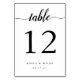 Cartões simples e chicos de números de tabela em preto e branco clássico fazem uma declaração elegante na sua recepção de casamento. Personalize com cada número de tabela, seus nomes e data de casamento em letras negras clássicas com acentos de script de caligrafia. Design repete-se no lado oposto. Coordena-se com a nossa suíte de convite para casamento Ampersand Monograma.