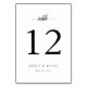 Cartões simples e chicos de números de tabela em preto e branco clássico fazem uma declaração elegante na sua recepção de casamento. Personalize com cada número de tabela, seus nomes e data de casamento em letras negras clássicas com acentos de script de caligrafia. Design repete-se no lado oposto. Coordena-se com a nossa suíte de convite para casamento Ampersand Monograma.