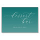Este elegante sinal de mesa para casamento apresenta um fundo gradiente que transita de um tom profundo de teal para um turquesa mais claro, criando uma atmosfera fresca e convidativa. A frase "barra de sobremesas" é escrita em uma fonte cursiva elaborada, enquanto a chamada para ação "POR FAVOR, PEGUE UM PRESENTE!" é exibida em uma fonte simples sem serifa abaixo, garantindo clareza e charme. O design minimalista foca na tipografia, com amplo espaço negativo que realça sua estética moderna. Perfeito para guiar os convidados a uma deliciosa seleção de sobremesas em seu evento, este sinal emana um clima acolhedor e alegre.