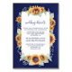 Casamento Russo Real de Girassol Cartões de Inserção - apresenta girassóis elegantes de aquarela com verde claro entrelaçados sobre uma caixa de texto única. O fundo é um design de quadro azul real ou profundo.