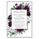 Design apresenta pessoas e rosas em vários tons de roxo, como burgundy, Marsala, lavanda, ameixa e mais. O eucalipto prateado e outros elementos verdes estão entrelaçados no design para adicionar elegância às flores. O design também apresenta uma borda prateada ou cinza impressa para fazer com que a cor da água seja pop. A parte traseira apresenta um pequeno buquê chic correspondente. Fontes modernas e caligráficas são usadas para uma aparência única.