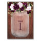 Estes cartões são perfeitos para o casamento do seu boho country. O design apresenta um buquê de uma ameixa de água roxa e flores escamosas decoradas com lamparinas com fundo de madeira marrom rústica.