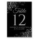 Torne a recepção do seu casamento bonita com estes cartões de número de mesa. Eles apresentam um design simples, mas elegante com texto cinza claro em um fundo preto com uma filigrana floral prateada falsa em relevo nos cantos.