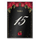 Numeração De Mesa Preto com Rosas vermelhas Quinceañera
