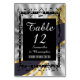 Tradicional chic elegante, preto masculino moderno e elegante, cinzas prateadas e número personalizado de mesa dourado com notas musicais em volta, sobre fundo preto e fita irrisória, personalize com seu texto para os modelos para suas ocasiões ou celebrações especiais. Visite a LOJA PERSONALIZADA _WEDDINGS para produtos correspondentes. OBSERVE A cor do ouro e a cor do pewter prateado não é metálica.
