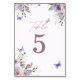 Números de mesa de design de cor d'água Elegante e de borboleta.