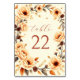 Apaixonar-se por um cartão de número da mesa de casamento de pêssego floral.