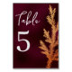 Esta placa de número de tabela apresenta um tema simples e moderno do casamento no inverno. O plano de fundo apresenta um padrão de textura de folha colorida à hambúrdia. Uma ramificação de pínus é colocada à direita e apresenta um gradiente de folha de cobre. Nomes de exemplo de noiva e noivo são impressos à esquerda em uma letra elegante, seguida de uma data de casamento e localização. Você pode personalizar o cartão de mesa para incluir seu próprio nome personalizado ou texto.