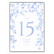 Numeração De Mesa Recepção de casamento botânica azul-francesa
