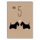 A noiva escocesa negra e as silhuetas do noivo com coração. Um cartão de mesa de estilo papel kraft para amantes do Scottie Dog. Cada cartão deve ser numerado e adicionado separadamente ao carrinho. Visite o Doodle World de Jenn para obter ainda mais cartões de mesa de raça canina e produtos de planejamento de casamento para Scottie.