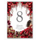 Numeração De Mesa Red Golden Tiara Floral Quinceañera