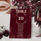 Numeração De Mesa Retro Burgundy Ivory Wedding Seating Guest Names