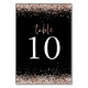 Rosa Dourado Esboço-Lho Negra. A mesa está em um script de estilo de escrita manual definido e seu número de tabela abaixo com bordas de falso brilho e fundo preto clássico. . Personalize facilmente o número. O mesmo design também está atrás.