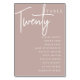 Cartões simples e chic em Rosa Taupe e branco fazem uma declaração elegante no seu casamento ou evento. Design apresenta "mesa [number]" em uma combinação de olhares de serif clássica e de caracteres de script manuscritos, com nomes individuais de convidados por baixo. Design repete-se de ambos os lados. Cartões numerados individualmente vendidos separadamente; solicite cada número de tabela individualmente da nossa coleção.