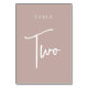 Cartões simples e chic em rosa de tom de terra e branco fazem uma declaração elegante no seu casamento ou evento. Design apresenta "mesa [number]" em uma combinação de olhares de serif clássica e de caracteres de script manuscritos. Design repete-se de ambos os lados. Cartões numerados individualmente vendidos separadamente; solicite cada número de tabela individualmente da nossa coleção.