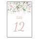 Números de tabela com uma borda flutuante floral de rosas rosas rosas e verde-salva. Nota: Você precisará comprar e editar esses cartões de mesa, um de cada vez, se quiser que os números sejam pré-impressos.