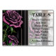 Este gráfico de assentos de mesa apresenta belos rosas roxos em uma janela no estilo gótico. Perfeito para seu casamento gótico ou aniversário!