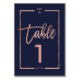 Numeração De Mesa Rose gold frame script navy blue table number