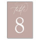 Cartões de número de mesa simples e elegantes em tom de rosa terroso e branco fazem uma declaração elegante no seu casamento ou evento. O design apresenta letras em caligrafia manuscrita com o número da sua mesa em numerais clássicos.