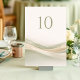 The flowing wave pattern evokes gentle folds and gathered fabric installations seen in modern ceremony backdrops and reception décor. The movement adds subtle depth and dimension to your tables, creating a sophisticated, elevated look that feels timeless and on-trend.
