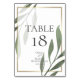 Cartão de Número de Tabela de Casamento | Folhas verdes de sage em aquarelas que rodeiam uma estrutura dourada translúcida. Folhas mostram através do quadro, verde nos cantos diagonais. Personalizar texto, estilo de fonte, cor e tamanho. Arte original criada para o BarefootBride™ por © WhimsicalArtwork™ - Esta é parte de um Conjunto completo de Artes de Casamento, chá de fraldas e outros artigos de papelaria para eventos semelhantes.