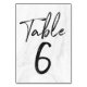 Adicione um toque de na moda à sua recepção de casamento com placas de mesa personalizadas. Os cartões de mesa de casamento apresentam um fundo de mármore branco e uma fonte de script de tendência. Números adicionais podem ser encontrados na coleção abaixo.