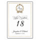 "Script Elegante Tipografia Preta Dourada Wreath Table Number." Personalizados com seus monogramas, nomes e datas de casamento (ou outro evento), são cartões simples, sofisticados e elegantes. Arte projetada graficamente pela artista e designer internacionalmente licenciada, Audrey Jeanne Roberts, copyright.