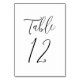 Elegant wedding table numbers featuring the table number displayed in a simple black script with a white background. The text and background colors can be changed to your wedding colors using the editing tools.