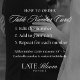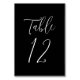Números da tabela de casamento elegantes que apresentam o número da tabela exibido em um simples roteiro branco com um fundo preto. As cores do texto e do plano de fundo podem ser alteradas para as cores do casamento usando as ferramentas de edição.