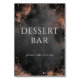 Este elegante sinal de mesa para casamento apresenta um fundo sofisticado de carvão escuro com manchas sutis em tom dourado-marrom, criando uma atmosfera sombria e convidativa. O design minimalista apresenta uma tipografia moderna e ousada que diz "DESSERT BAR" e convida os convidados a se deliciarem com a frase "por favor, pegue um doce". Suas linhas limpas e sotaques quentes o tornam perfeito para adicionar um toque de elegância a qualquer estação de sobremesas em seu evento especial.
