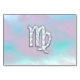 Um signo de Virgo Zodiac em uma mãe de pearl nacre cor-de-rosa e impressão azul. Um design moderno para uma ideia de presente personalizada de excelente. Use o link "Perguntar a este Designer" para entrar em contato conosco com suas solicitações especiais de design ou para obter assistência com seu projeto de personalização.