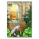 Cenário de fantasia de casamento real, branco e azul-esverdeado, num templo tropical rodeado por verde com decoração de joias de uma pena de ouro moderna. Paleta colorida de ouro, branco e verde, com na moda brilho elegante, plenas de pavão azul-ceruleano de ouro e flores brancas.