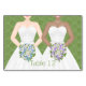 A Sra. e a Sra. duas noivas em vestidos de casamento com buquês florais - Cartões de mesa de casamento gay / casamento do orgulho lésbico / cartões de fixação da mesa da cerimônia civil. Cartazes de gay de casamento do Ricaso original artwork©delightful-doodles.com