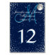 Esta noite estrelada com cartão de número da mesa de casamento da Lua parece elegante e sofisticada. O fundo tem apenas um toque de brilho e se parece com estrelas, ajudando a tornar esta carta ainda mais especial. Personalize com os nomes da noiva e do noivo para fazer uma placa especial que também pode ser usada como um guardião. Quando solicitar este cartão, certifique-se de que "faz" cada número individualmente e depois adicione-o ao seu carrinho. Quaisquer descontos, como o desconto em massa, serão então aplicados. Cartão projetado por Amelia Carrie. Tenha um dia maravilhoso! (Nota: Esta placa não contém brilho sujo e é um impressão de reprodução gráfica.) Consulte mais designs em GlitterInvitations.com ou Zazzle.com/GlitterInvitations