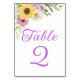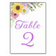 Add a joyful, nature-inspired touch to your reception with this sunflower and daisy boho floral wedding table number. Featuring bright sunflowers, delicate white daisies, and botanical greenery in soft pink, purple, and green tones, this watercolor design captures the charm of a romantic garden party celebration. Perfect for spring and summer weddings, this elegant table number pairs beautifully with boho chic, country, and outdoor wedding décor. The floral artwork brings warmth and personality to each table while keeping your seating layout clear and stylish for guests to enjoy.