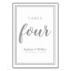Esta design foi criada para comemorações íntimas de casamento. A design da Tabela de Casamento Simples, Mínima e elegante Número Quatro apresenta um design contemporâneo com uma dupla borda de quadros em cinzas de fundo branco nítido. O design de chic oferece eterno, mas sofisticação moderna. Personalize a design de mesa de casamento com seus detalhes de casamento em cinzas e roteiro de tendências. A parte traseira da placa é uma duplicata da parte frontal. Encomenda um para cada mesa com os números de tabela individuais. O Mesa ONE to TEN foi projetado individualmente e está disponível na minha loja InvitationSuites no Zazzle. Embora tenha criado especificamente a um local menor, se precisar de números adicionais, envie-me um e-mail para InvitationSuites@gmail.com.