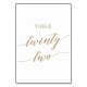 Numeração De Mesa Tabela Elegante de Caligrafia Dourada Número 22