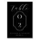 Um eterno, clássico e elegante sinal de número da mesa de casamento com uma estética mínima moderna em preto clássico e branco. Simples crista elegante de números de mesas com uma simples tipografia organizada em um layout moderno. **Todas as cores podem ser alteradas para se adequarem à sua preferência de cor de casamento. Veja os nossos outros itens de casamento correspondentes para esta coleção.