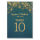 Teal elegante com luzes de cordas douradas brilhantes e número da tabela de recepção de casamento. Entre em contato conosco para obter ajuda sobre a personalização ou produtos correspondentes.