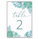 Numeração De Mesa Teal Succulent Wedding | Azul Verde Botânico