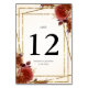 Destaque as mesas são a sua recepção de casamento com estas placas elegantes de números de tabela. O design apresenta belos rosas coloridos terracotta escuros, acentuados com uma falso estrutura de brilho dourado. Este convite é perfeito para um casamento outono.
