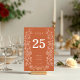 Número Da Mesa De Casamento Floral De Terracotta. Esta placa de número de tabela tem um estilo suave e elegante com uma estrutura floral branca que parece eterno. As ilustrações florais brancas deliciosas ao longo dos lados adicionam um toque de charme brilhante e inspirado na natureza. O layout é limpo e organizado, usando um alinhamento centralizado e espaçamento nítido para criar uma aparência refinada. Perfeito para um tema de outono. No geral, a design sente-se romântica, mas subestimada, perfeita para um casamento moderno ou tradicional.