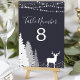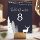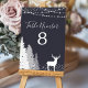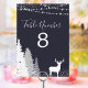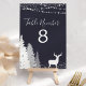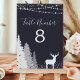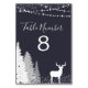 Guie seus convidados aos seus lugares com um toque de elegância invernal. Estes números de mesa, apresentando um majestoso veado em meio a uma floresta nevada, adicionam um toque de charme rústico à sua recepção. A borda azul marinho complementa a cena natural, criando um toque sofisticado. Cada número de mesa é totalmente personalizável, permitindo que você adicione seu toque único a esta encantadora cena florestal.