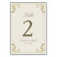 Adicione um toque de elegância eterno à sua recepção com esta vintage carta de número da mesa barroca de casamento. Apresentando cantos de trabalho de rolagem em ouro ornamentado e um refinado fundo bege neutro, ele complementa perfeitamente os temas clássicos, antigos e românticos do casamento. Ideal para casamentos barrocos, vitorianos ou de inspiração real, esses números de mesas guiam seus hóspedes em estilo ao elevar sua decoração.
