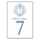 Este cartão de número da mesa de casamento inspirado na regência combina elegância do eterno com sofisticação prática, com uma crista floral refinada no topo, personalizada com as iniciais do casal. Por baixo da crista, os nomes do casal e a data do casamento são mostrados em caligrafia graciosa, seguida de um número de tabela em negrito na coordenação de tons azuis para uma fácil visibilidade. Perfeito para comemorações do núcleo do regenciclo ou do domínio antigo, este design adiciona um toque de luxo e charme às suas mesas de recepção, guiando os convidados para seus assentos enquanto complementa sua decoração romântica e elegante.